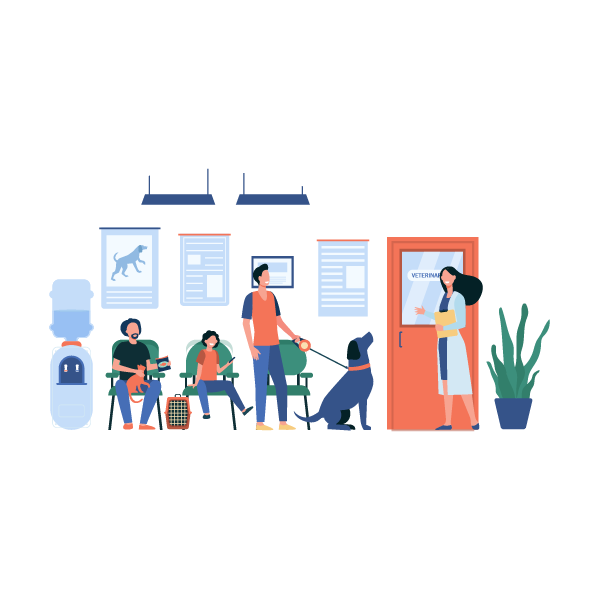 Una sala più ampia dedicata all’accesso dei cani e dei loro proprietari con antistanti uno spazio esterno e un giardino condominiale. Si consiglia di accompagnare il cane in non più di due persone e attendere di essere chiamati.